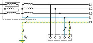 在TN系統(tǒng)中,一點直接接地并且電氣裝置的裸露導(dǎo)電部分通過保護接地線連接到這一點。