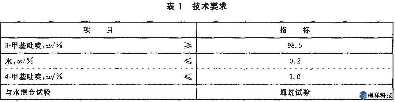 工業(yè)用3-甲基吡啶應(yīng)符合表1所示的技術(shù)要求。