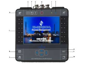 •僅使用批準用于 CSI 2140 和 Emerson 電池組且由 Emerson 提供的電源和充電器。如果使用的任何電源和充電器不是 Emerson 批準的電源和電池組充電器,不但會使保修失效,還極有可能損壞分析儀或電池組。