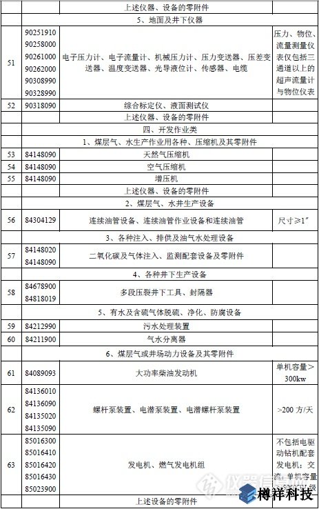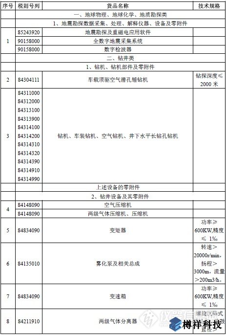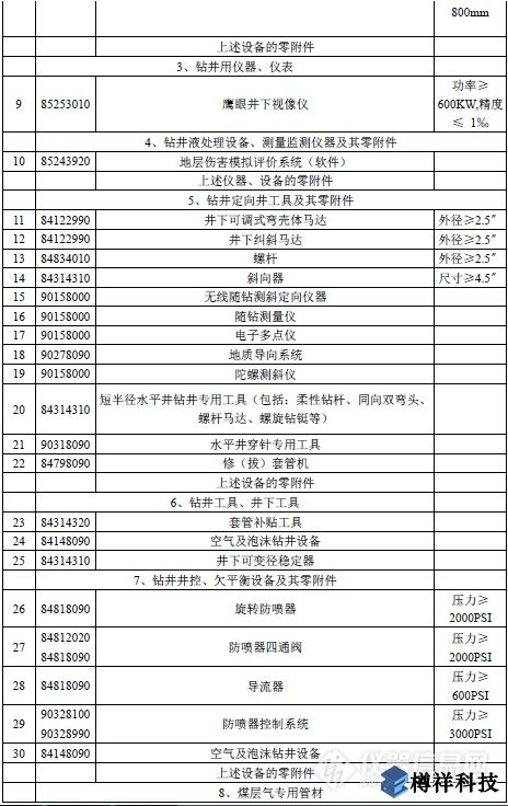 附表:勘探開發(fā)煤層氣免稅進(jìn)口物資清單
