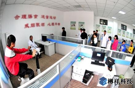 該體質檢測中心分為體質檢測和運動健身兩大功能區(qū),每天免費為群眾進行身體各項機能指標檢測, 15到20分鐘就能做完一套體質檢測,終端系統(tǒng)立刻給出健康評估報告,并通過互聯(lián)網(wǎng)讓健康教練開出運動處方,提出有針對性的訓練方案,受測人按處方科學合理鍛煉。